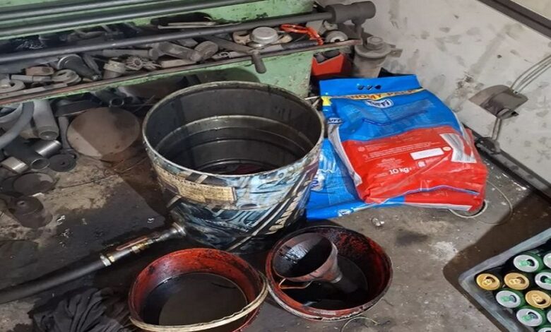 Mężczyzna – przyznając się do spalania oleju – wskazał pojemniki z przepracowanym olejem, którego używał jako opału. Teraz za swój czyn sprawca odpowie przed sądem.